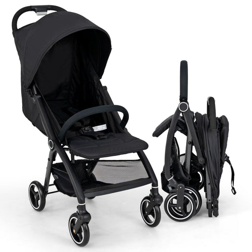 Lightweight Foldable Baby Stroller with Adjustable Backrest and Canopy-Black