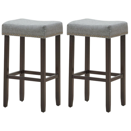 View full detailsArmless Upholstered Counter Height Bar Chairs, Set of 2 - Sturdy Wood Legs and Footrest in Grey - Ideal for Kitchen Island and Home Bar Seating