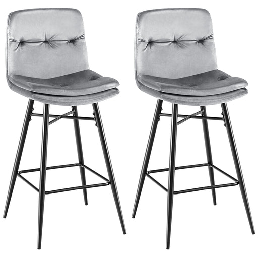 View full detailsVelvet Upholstery Bar Chairs - Counter Height Stools with Steel Legs and Footrest in Grey - Ideal for Elevated Dining and Bar Spaces