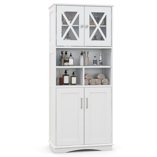 View full details148cm Tall Bathroom Cabinet Storage Cabinet with Glass Doors-White