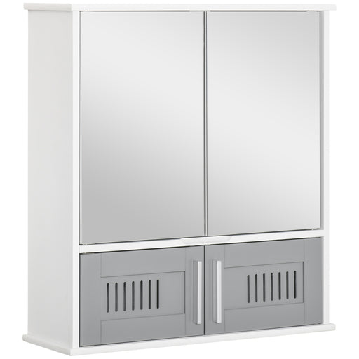 View full detailsWall-Mounted Bathroom Mirror Cabinet - Double Door Storage Cupboard with Adjustable Shelf, Grey Finish - Space-Saving Organizer for Bathroom Essentials