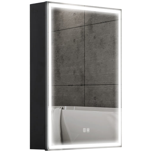 View full detailsHOMCOM Bathroom Mirror Cabinet with LED Lights and Shaver Socket, 500 x 700 mm Wall Mounted Bathroom Cabinet with Mirror, Demister Pad, Dimmer, 3 Colours, Medicine Cabinet, Black