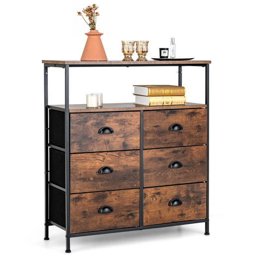 Rustic Brown 2-Tier Dresser - Features 6 Removable Fabric Drawers and Wooden Top - Ideal for Bedroom Storage and Organization