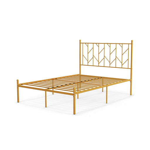 View full detailsMetal Platform Bed Frame - Single/Double Size, Black Golden Finish with Headboard - Ideal for Minimalist Bedroom Decorations