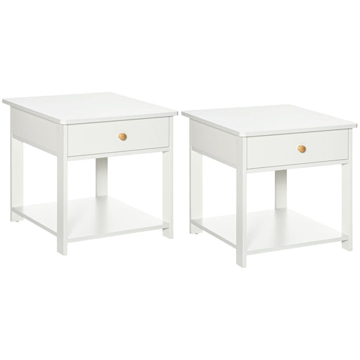 View full detailsSquare Bedside Table with Drawer - Elegant White Side End Table Set with Bottom Shelf for Storage - Ideal for Bedroom and Living Room Decor, Pack of 2