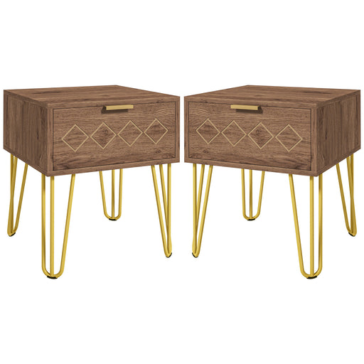 View full detailsWooden Nightstand Pair with Drawer - Modern Bedside Table Set with Gold Tone Metal Legs - Elegant Storage Solution for Bedroom Spaces