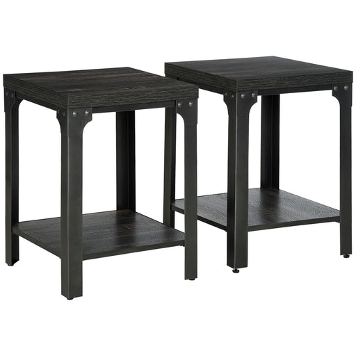 View full detailsIndustrial Side Table Set - 2-Pack Bedside Tables with Storage Shelf, Thickened Top & Steel Frame - Ideal for Living Room & Bedroom, Dark Walnut Finish