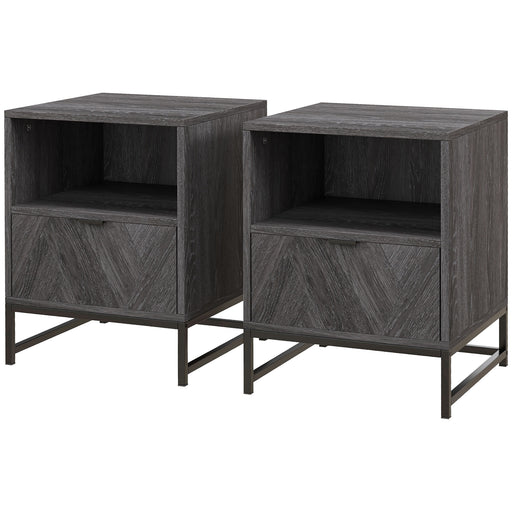 View full detailsDark Grey Bedside Tables Set of 2 - Modern End Table with Drawer and Shelf, Sturdy Steel Legs - Ideal for Living Room and Bedroom Storage