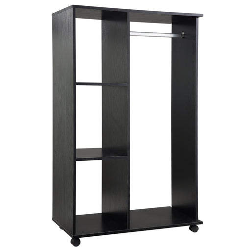 View full detailsRolling Open Wardrobe - Hanging Rail and Storage Shelves for Bedroom Organization - Perfect for Space-Saving & Easy Mobility in Black