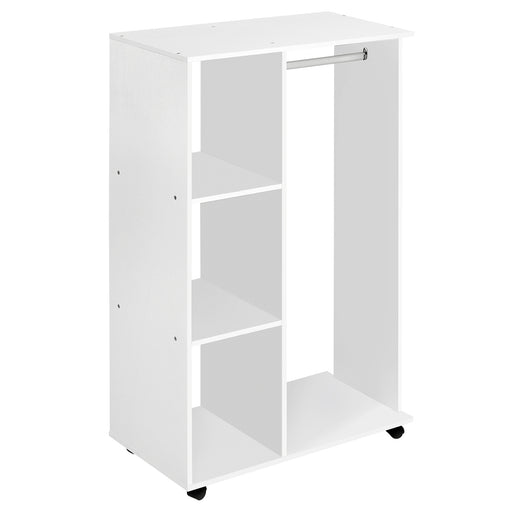 View full detailsOpen Wardrobe with Hanging Rail - Wheeled Storage Unit with Shelves for Bedroom - Versatile Organizing Solution in White