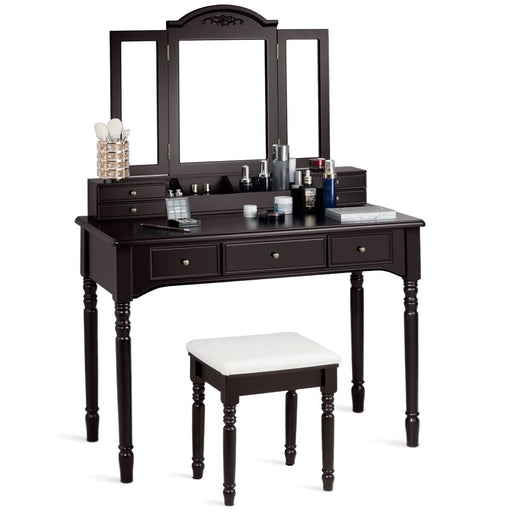 View full detailsDetachable Brown Dressing Table Set - Tri-Folding Mirror and Stool Included - Perfect for Beauty and Makeup Enthusiasts