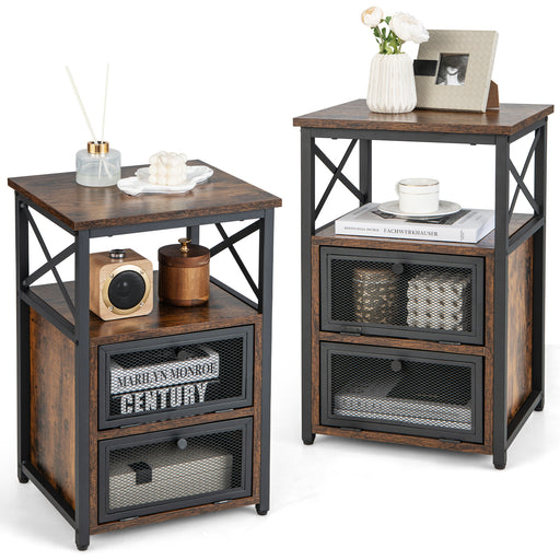 View full detailsNightstand Set of 2 - Modern Design with 2 Flip Drawers and Open Shelf, Rustic Brown - Perfect for Bedroom Storage Solutions