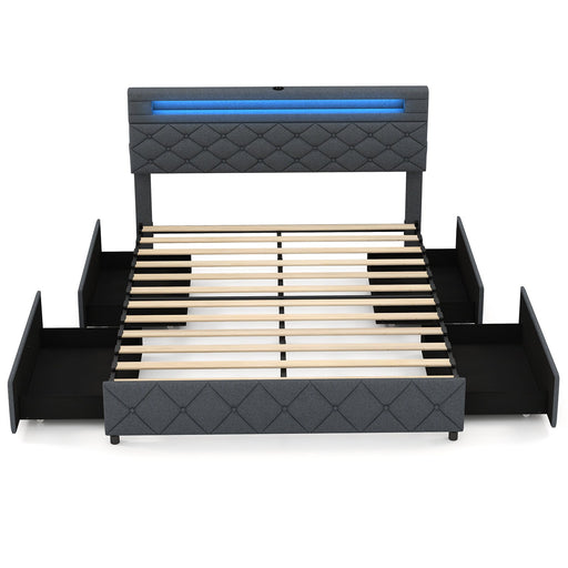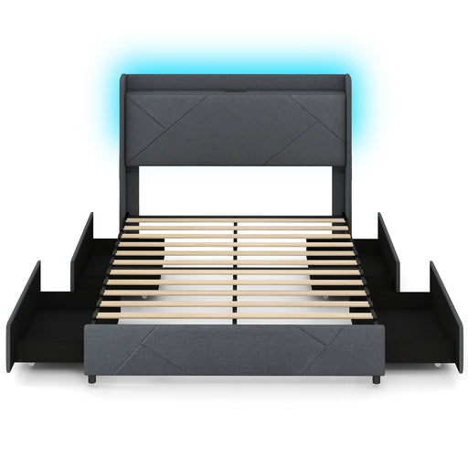 View full detailsDouble/King Size Bed Frame with LED Lights and Charging Station-King Size