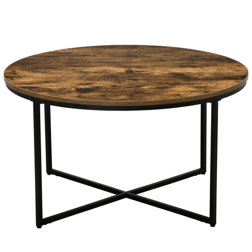 View full detailsIndustrial Round Coffee Table - Sturdy Metal Frame with Spacious Rustic Brown Top - Perfect for Living Room and Bedroom Comfort