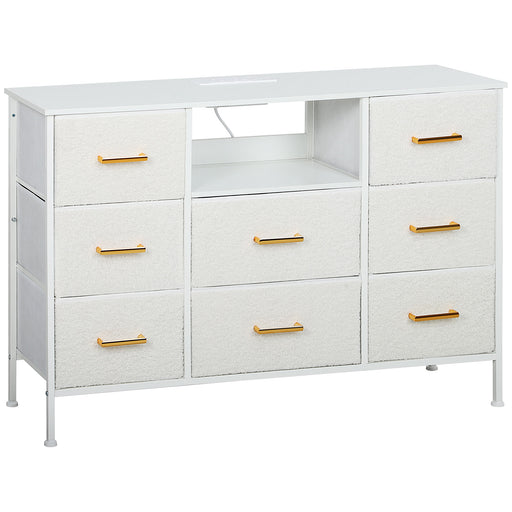 View full detailsHOMCOM Boucle Chest of Drawers, 8 Fabric Drawers Storage Organiser with Charging Station, 2 USB and 2 AC Ports, Steel Frame, Fabric Dresser for Living Room, Bedroom, Hallway, Cream White