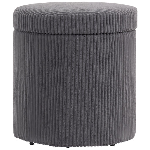 View full detailsHOMCOM 40cm Round Storage Ottoman, Corduroy Footstool with Removable Lid and Legs, Vanity Stool for Living Room, Bedroom, Grey