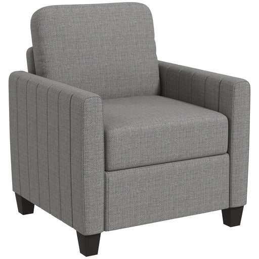 View full detailsHOMCOM Armchair, Channel Tufted Modern Fabric Accent Chair, Comfy Upholstered Reading Lounge with Spring Cushion, Back Pillow, for Living Room, Bedroom, Office, Light Grey