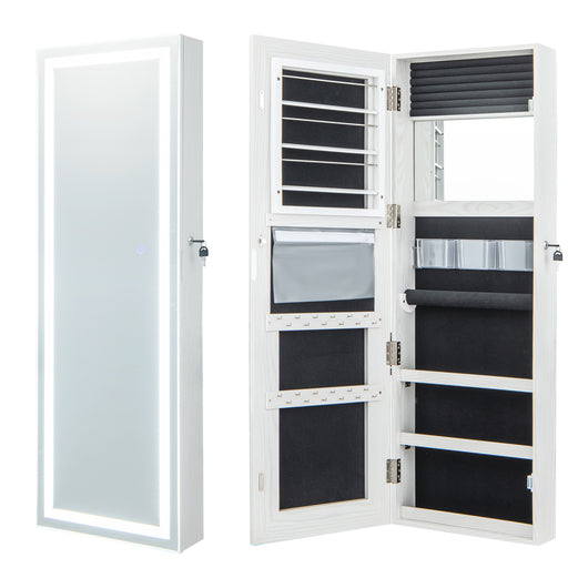View full detailsLED Mirror Jewelry Cabinet 120cm - Features 3-Color Lights and Lockable Magnetic Door in White - Ideal for Secure Jewelry Storage and an Enhanced Dressing Experience