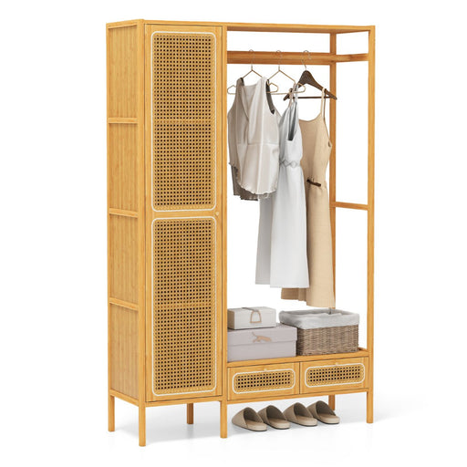 View full detailsBamboo Clothing Rack with Cabinet and Hanging Rod-