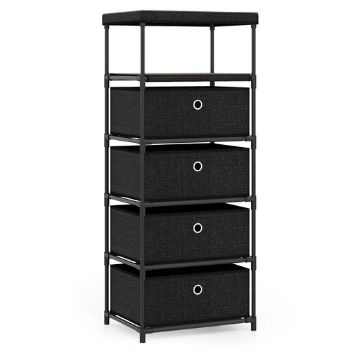 The fabric storage cabinet offers ample space with foldable drawers, a countertop, and an extra shelf. Made of metal tubes, it can withstand daily ...