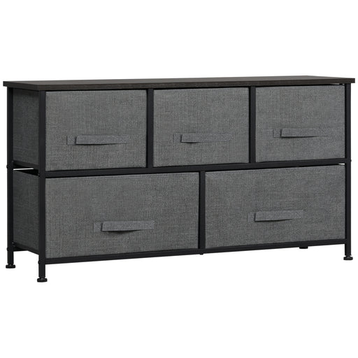 View full detailsHOMCOM Chest of Drawers, 5 Drawer Fabric Dresser with Steel Frame, Adjustable Feet, Storage Organizer Unit for Bedroom, Living Room, Dark Grey