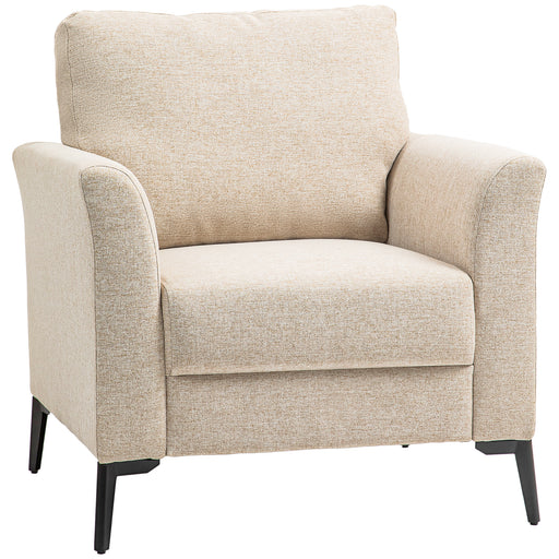 View full detailsHOMCOM Modern Armchair, Linen Fabric Upholstered Accent Chair with Metal Legs, Wood Frame and Padded Cushion for Living Room Bedroom Office, Beige
