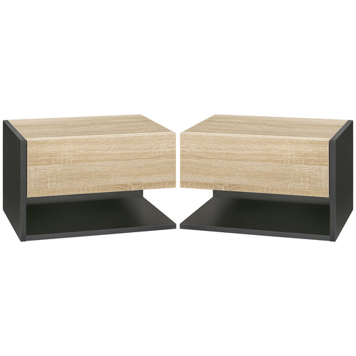 HOMCOM Floating Bedside Table Set of 2, Wall Mounted Bedside Cabinet with Drawer and Open Shelf, Modern Nightstand for Bedroom, 46 x 30 x 30 cm, Oak Tone