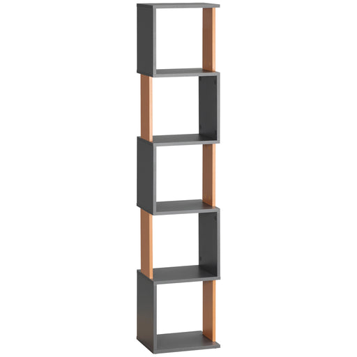 View full details5-Tier Modern Bookcase - Freestanding Storage Shelving Unit, Dark Grey Finish - Ideal for Living Room, Home Office or Study Organization