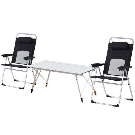 View full details5-Piece Camping Table & Chair Set - Foldable Aluminium Furniture with Roll-up Top, Lightweight and Portable - Ideal for Picnics and Outdoor Activities