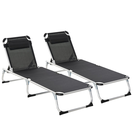 View full detailsFolding Sun Lounger Set of 2 - Beach Chaise Chair with 4-Position Adjustable Backrest, Grey - Ideal for Garden, Camping & Relaxation