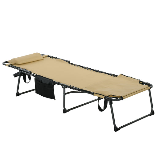 View full detailsFolding Sun Lounger with Adjustable Backrest and Pillow - Comfortable Reclining Camping Bed for Beach and Pool Relaxation - Ideal for Outdoor Leisure in Beige