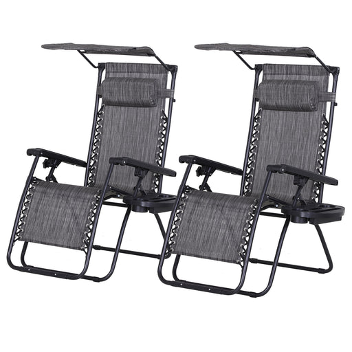 View full detailsFoldable Reclining Garden Chair Set with Headrest - Zero Gravity Outdoor Loungers with Footrest, Armrests, Cup Holder & Canopy Shade - Comfortable Patio Furniture for Relaxation