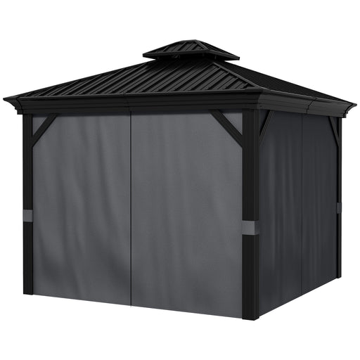 View full details3 x 3.7m Aluminum Hardtop Gazebo - Two-Tier Vented Roof & Mesh Netting Sidewalls, Dark Grey - Ideal Outdoor Shelter for Patio Entertainment