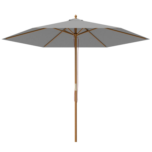 Outsunny 2.5m Wood Garden Parasol Sun Shade Patio Outdoor Wooden Umbrella Canopy Light Grey
