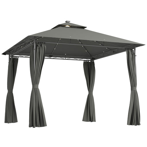 View full detailsOutsunny 3 x 3 m Garden Gazebo, Double Roof Metal Gazebo with Curtains and Solar-Powered LED Lights, Outdoor Gazebo Canopy Shelter for Patio, Deck, Dark Grey