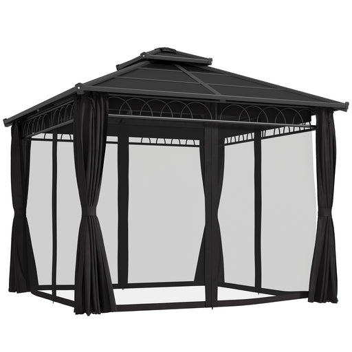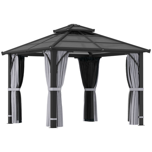 View full detailsOutsunny 3 x 3(m) Hardtop Gazebo Canopy with UPF30+ Double Polycarbonate Roof, Aluminium Frame Garden Gazebo Permanent Pavilion with Mosquito Netting and Curtains for Patio, Deck, Grey
