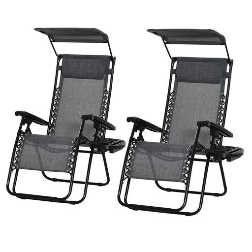 View full detailsFoldable Zero Gravity Garden Chair Set - Reclining Sun Loungers with Headrest, Footrest, Armrests & Cup Holder - Patio Relaxation with Canopy Shade for Outdoor Comfort