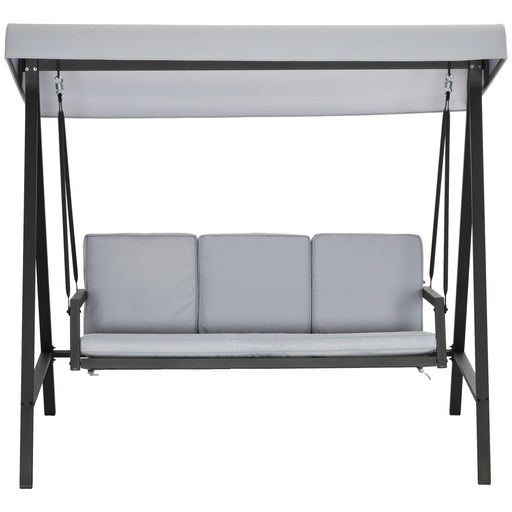 View full detailsOutdoor 3-Seater Swing Chair with Steel Frame - Adjustable Canopy & Removable Cushions, Grey Hammock Bench - Perfect for Patio, Garden or Backyard Relaxation