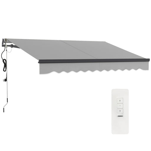 View full detailsOutsunny 3.5 x 3 m Electric Awning with Remote Controller, Aluminium Frame DIY Retractable Awning, UV50+ Sun Shade Canopy for Garden Patio Deck Door Window, Light Grey