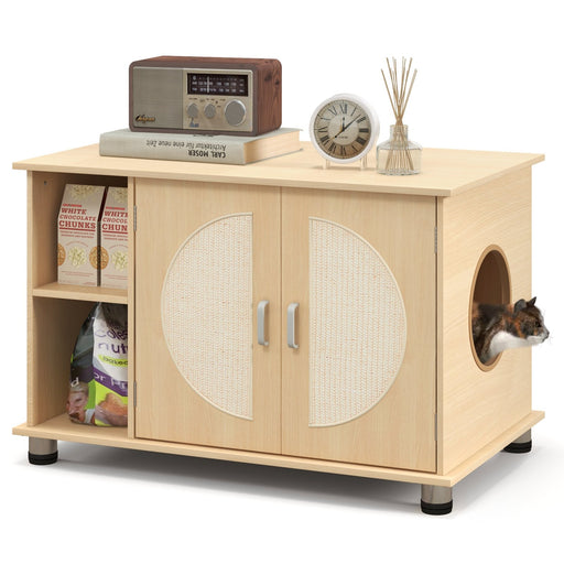 View full detailsCat Litter Box Enclosure with Sisal Scratching Doors and Adjustable Metal Feet-Natural