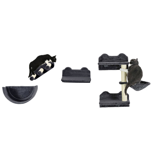View full detailsCat Haven 4-Piece Set - Grey Wall-Mounted Furniture for Felines - Space-Saving Solutions for Cat Owners