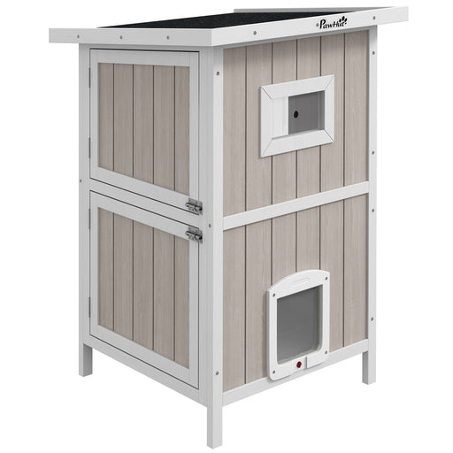 View full detailsWooden Feral Cat Shelter with Waterproof Asphalt Roof - Tri-Door Outdoor Cat Hideaway House, 77x57.5x68cm, Grey - Ideal for Stray & Feral Cats Sanctuary