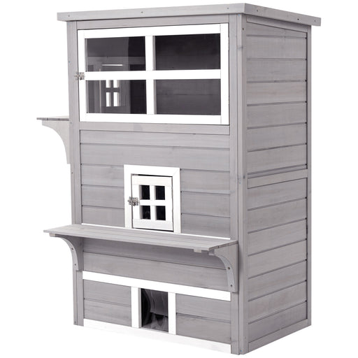 View full detailsOutdoor Wooden Cat House - Water-Resistant Roof, Enclosed Kitty Play Shelter with Door and Window - Ideal for Garden Pet Haven and Privacy