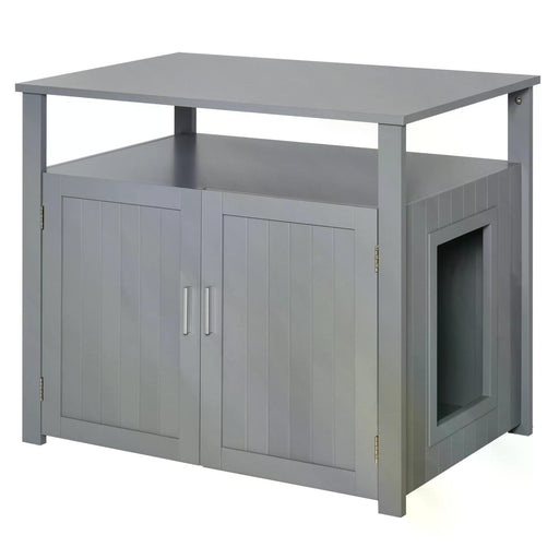View full detailsWood Cat Litter Cabinet with Divider - Adjustable Wall, Spacious Top Surface Nightstand - Discreet Litter Box Holder for Cats, Grey Finish