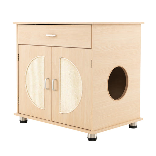 View full detailsCat Litter Box Enclosure - Sisal Scratching Doors and Drawer in Natural Finish - Perfect for Keeping Cat's Litter and Scratching Needs Hidden Away