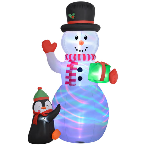 View full detailsOutsunny 8FT Christmas Inflatable Snowman Holding Gift Box with Penguin, Christmas Blow Up Snowman with Rotating Colorful LED Light for Indoor, Outdoor, Party | Aosom UK