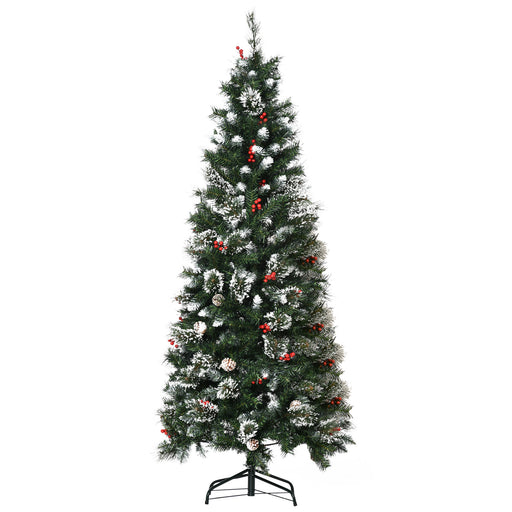 View full detailsSlim Snow-Dipped Artificial Christmas Tree, 6ft with Pine Cones and Berries - Realistic 588 Branch Pencil Xmas Tree, Auto Open - Perfect for Small Spaces and Holiday Decor