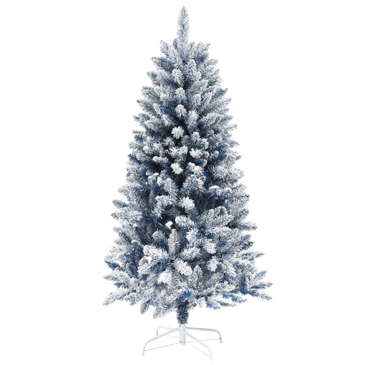 View full details5ft Flocked Artificial Christmas Tree with Metal Stand - 450 Snow Frosted Tips & Blue Hinged Design - Perfect Snowy Xmas Decor for Holiday Season