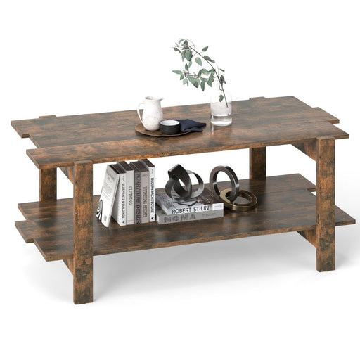 View full details2-Tier Coffee Table with Storage Shelf for Living Room-Walnut