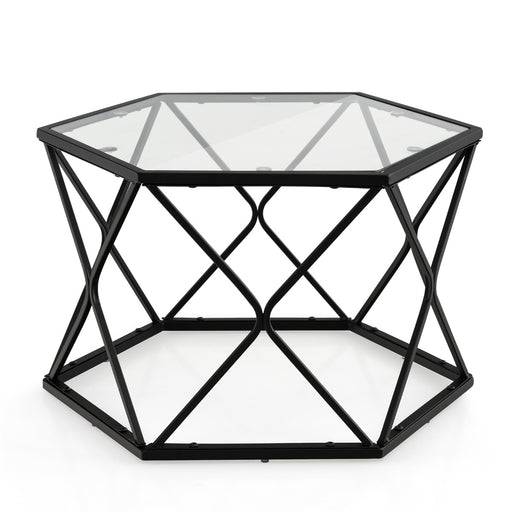 View full detailsAccent Geometric Design - Glass Coffee Table with Solid Black Metal Frame - Ideal for Contemporary Living Spaces
